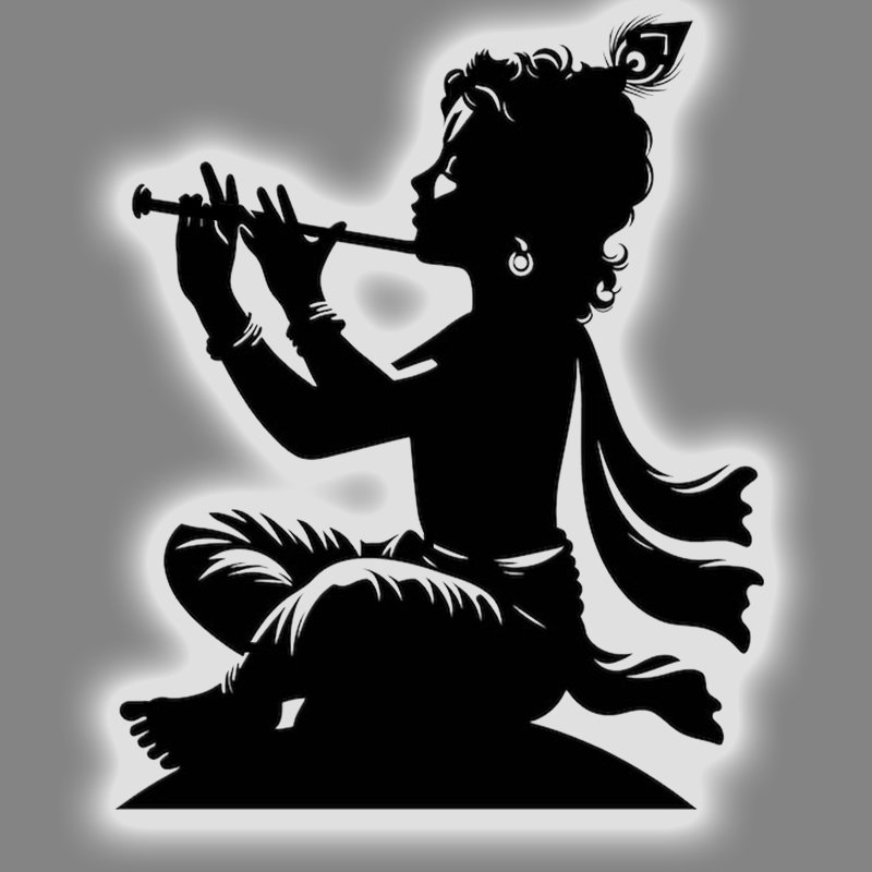Design: Lord Krishna with flute, detailed aura