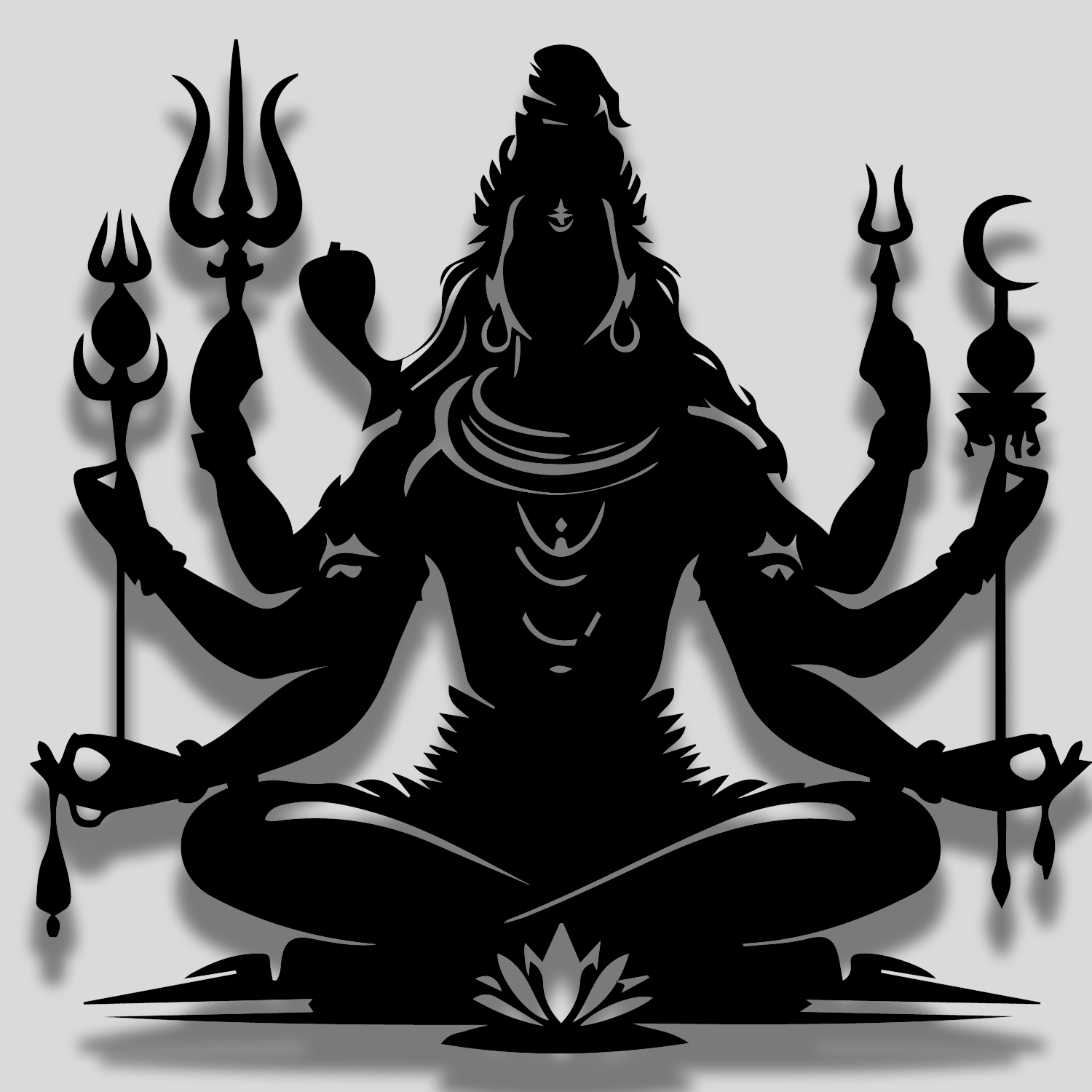 This 12 x 12 inches Lord Shiva Metal Wall Art is meticulously crafted using high-quality iron and advanced laser-cut technology to achieve fine detailing and a powerful silhouette. Finished with a durable matte black powder coating, the artwork blends effortlessly with both modern and traditional interiors.